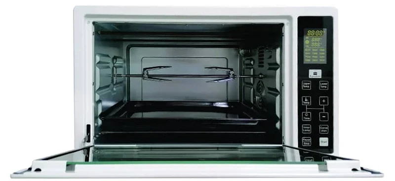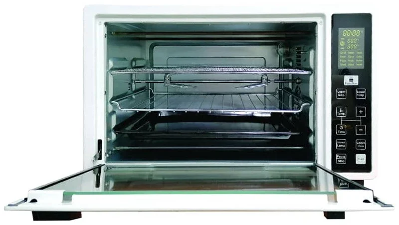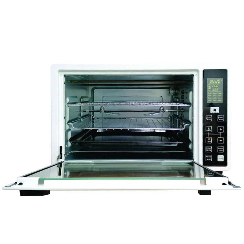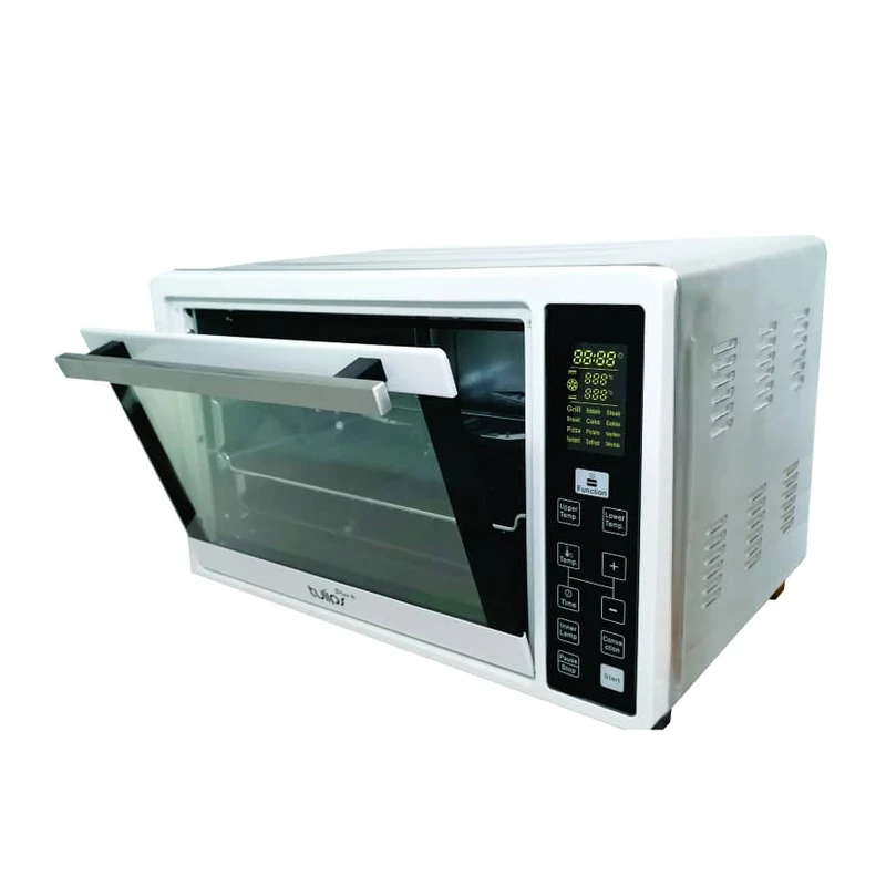 ظرفیت 38 لیتری، آون توستر OT-A3807CD را در رده آون توسترهای بزرگ و بسیار کارآمد قرار میدهد. برای درک بهتر، این فضا به راحتی برای پخت یک مرغ درسته، یک پیتزای خانواده، یا قرار دادن دو سینی متوسط به صورت همزمان کافی است. این گنجایش، آن را به یک جایگزین واقعی برای فرهای بزرگ توکار، خصوصاً برای خانوادههای با جمعیت متوسط، تبدیل میکند.