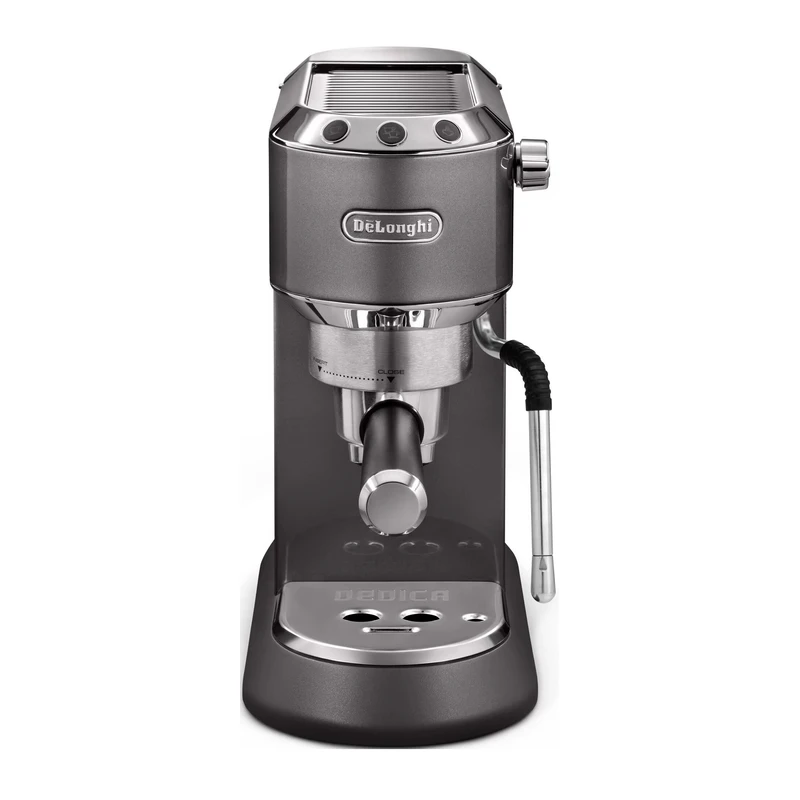 سطح بالایی آن مجهز به صفحه گرمکن فنجان است تا پیش از ریختن قهوه، دمای ایدهآل فنجان حفظ شود. دکمههای فشاری کوچک با طراحی مینیمال، ظاهر دستگاه را ساده و کاربردی کردهاند. پرتافیلتر فلزی، نازل بخار و سینی چکهگیر استیل، حس یک دستگاه حرفهای را منتقل میکنند. همچنین، مخزن ۱.۱ لیتری آب قابل جداسازی شستوشو و پر کردن را بسیار آسان کرده است. این اسپرسوساز ترکیبی از زیبایی، کارایی و نظم است؛ یعنی همان چیزی که از دلونگی انتظار میرود.