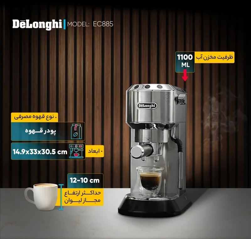 مشخصات فنی اسپرسو ساز دلونگی مدل EC885