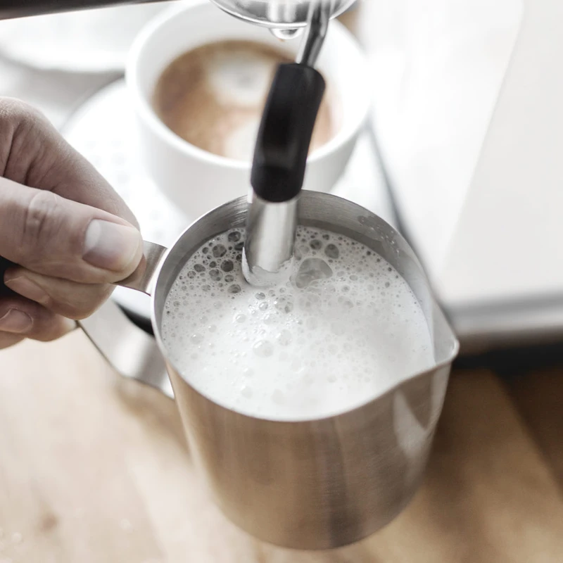 میله بخار یا استیمر، بخار پرفشار را برای ایجاد بافت کفشیر یا میکروفوم به بیرون هدایت میکند. این ابزار برای تهیه نوشیدنیهای مبتنی بر شیر مانند کاپوچینو و لاته حیاتی است. کیفیت بخار تولید شده (که وابسته به قدرت ۱۴۰۰ وات است)، مستقیماً بر روی بافت و دمای شیر نهایی تأثیر میگذارد.