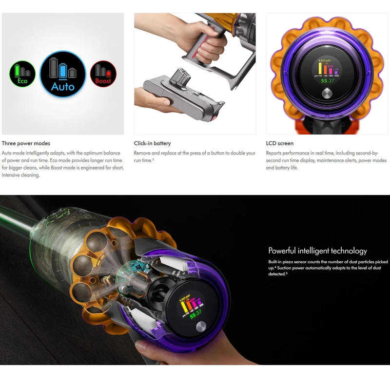 قلب تپنده جاروشارژی دایسون، یک موتور دیجیتال پیشرفته است. این موتور، برخلاف نمونه‌های قدیمی‌تر، با دقت بالا و حداقل اصطکاک کار می‌کند. نتیجه آن، مکشی قدرتمند و پایداری طولانی‌مدت دستگاه است. برای مثال، این طراحی باعث می‌شود که اپیلایتور با حداکثر توان 240 وات، ذرات ریز و درشت را به آسانی جمع‌آوری کند.