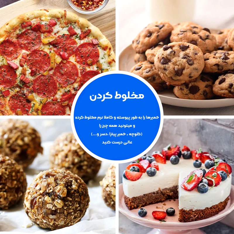 این تیغه پلاستیکی مقاوم با طراحی خاص، جایگزین ورز دادن طولانی و خستهکننده خمیر با دست میشود. شکل و حرکت آن، فرآیند ترکیب آرد و آب و ایجاد گلوتن را شبیهسازی میکند. در عرض چند دقیقه، خمیری کاملاً یکدست و آماده برای پخت نان، پیتزا یا شیرینی تحویل میدهد، بدون اینکه به بافت خمیر آسیبی برساند.