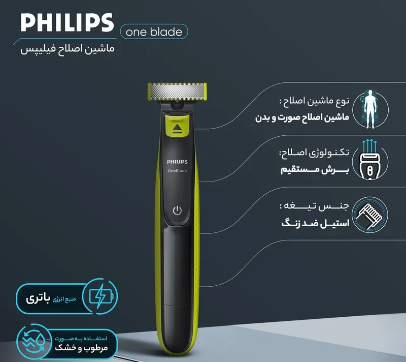 مشخصات فنی ماشین اصلاح صورت و بدن فیلیپس مدل OneBlade