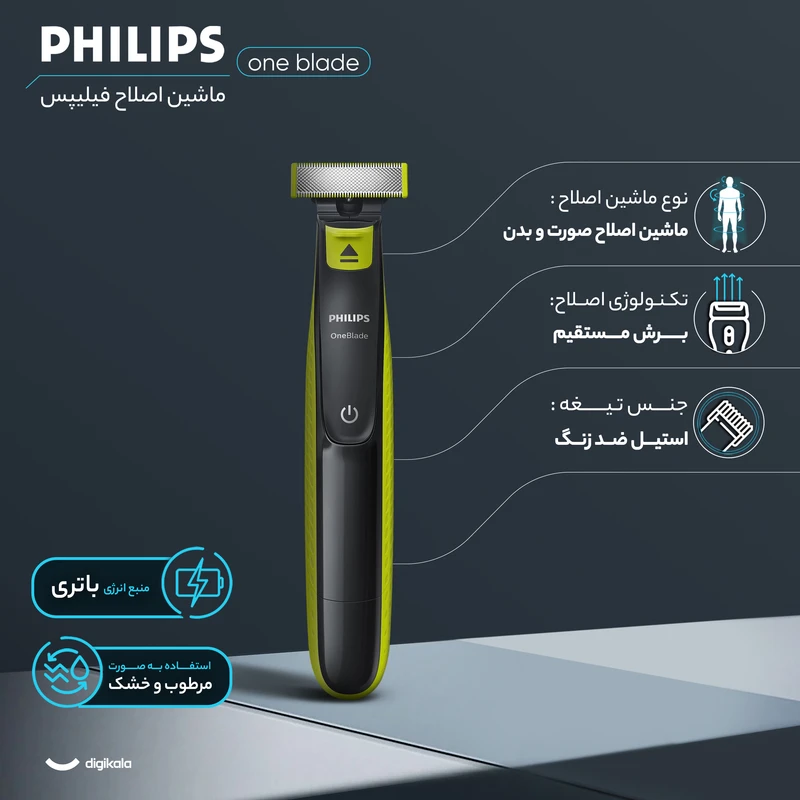 مشخصات ظاهری ماشین اصلاح صورت و بدن فیلیپس مدل OneBlade