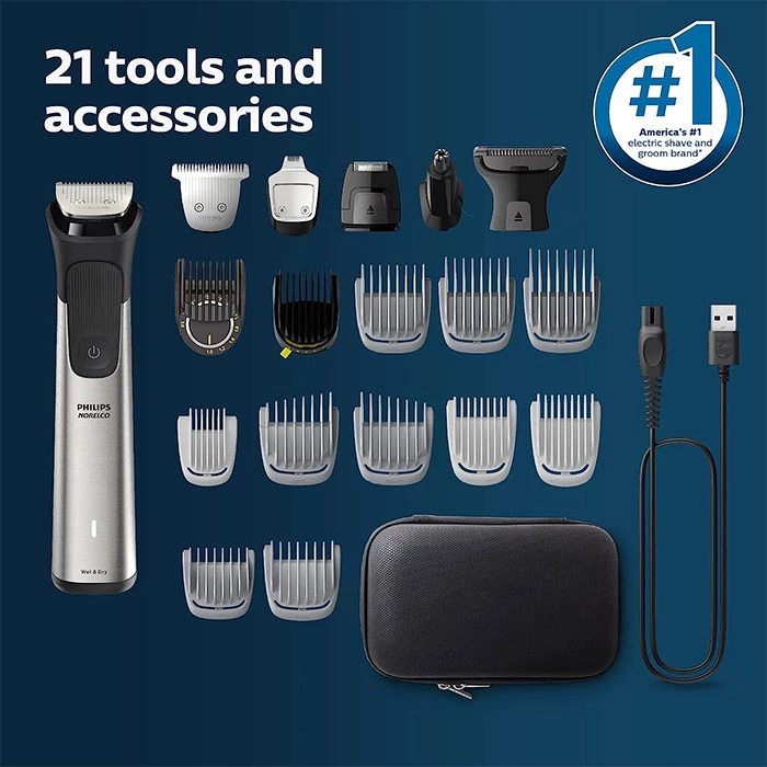 این دستگاه با 21 ابزار مختلف عرضه می‌شود که هر یک کاربرد خاص خود را دارند. تریمر فلزی برای اصلاح خط ریش یا موهای ضخیم‌تر به کار می‌رود. تریمر دقیق جهت ایجاد خطوط ظریف و جزئیات دقیق در ریش یا سبیل استفاده می‌شود. ریش‌تراش فویلی برای اصلاح نزدیک به پوست و ایجاد ظاهری کاملاً صاف، مانند اصلاح با تیغ، مناسب است.