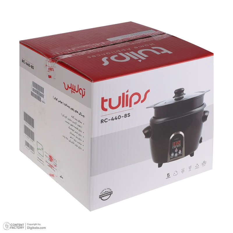 این عدد نشاندهنده قدرت المنت گرمایشی پلوپز تولیپس مدل RC-440-8S است. توان ۷۵۰ وات، یک تعادل بهینه بین مصرف انرژی و سرعت پخت ایجاد میکند. این قدرت تضمین میکند که دستگاه در مدت زمان کوتاهی به دمای مورد نظر برای پخت برسد.