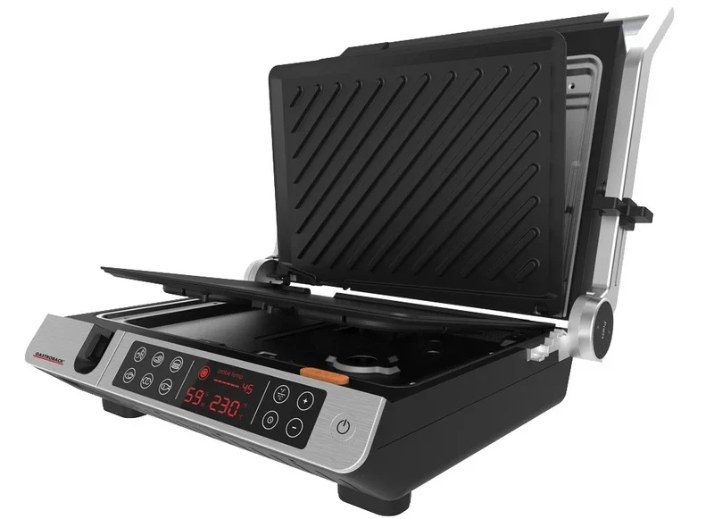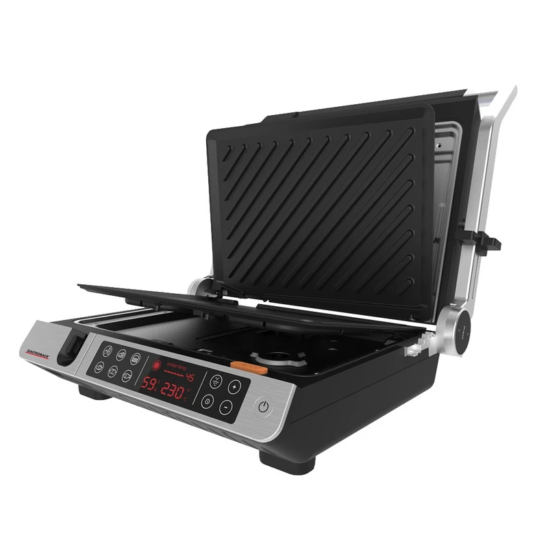 منطقه گریل بزرگ در دستگاه گاستروبک مدل 42539 برای پخت همزمان چند ماده استفاده میشود. میخواهی دو استیک و چند فلفل را همزمان گریل کنی؛ فضا کافی است و نتیجه بافت مشابهی خواهند داشت.