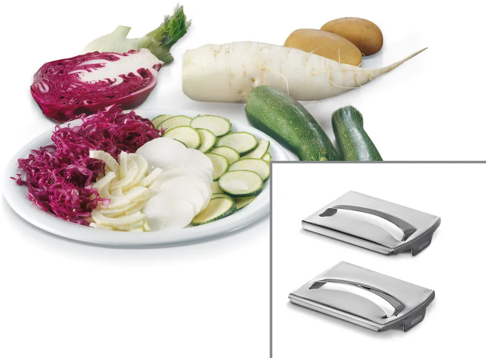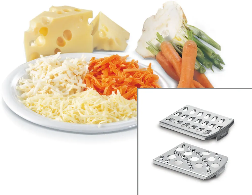 با چهار نوع صفحه رنده مختلف، میتوانید مواد غذایی را به شکلهای مختلف رنده کنید. مثلاً برای رنده کردن هویج برای سالاد، میتوانید از رنده درشت استفاده کنید و برای پنیر، رنده ریز. این تنوع در ابزارها به شما قابلیت بیشتری در پخت و پز میدهد و به راحتی میتوانید طبق نیاز خود انتخاب کنید.